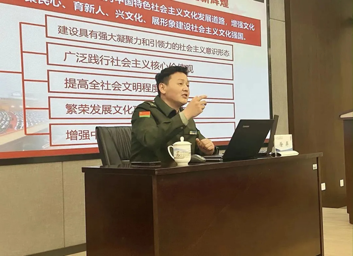 會議最后,海陵全體黨員及部門負責人進行了二十大會議精神集體學習,陸軍工程大學“星火”理論宣講隊成員、陸軍工程大學政治工作系馬克思主義教研室副主任徐羿教授為全體參會人員進行了二十大報告專題解讀,主要分為以下幾個方面: