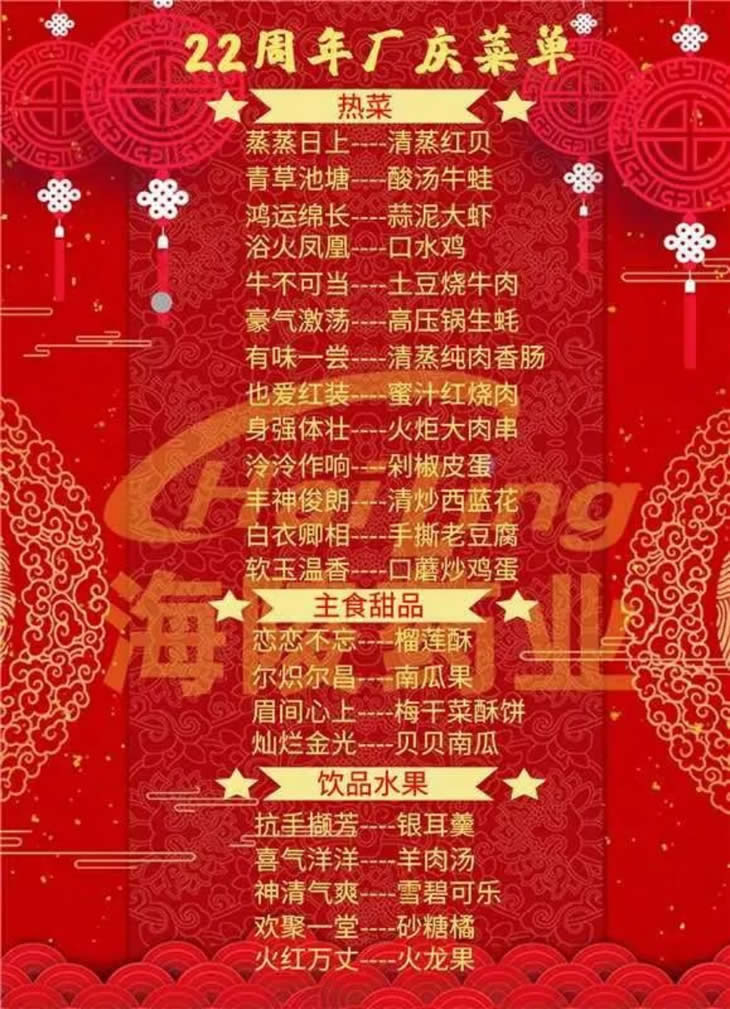 二十二年!是一道歷史印跡的長(zhǎng)度!是揚(yáng)帆逐夢(mèng),轉(zhuǎn)型發(fā)展的高度!海陵食堂準(zhǔn)備了豐盛的廠慶自助餐活動(dòng),邀請(qǐng)大家一起共享這份喜悅,見(jiàn)證奮進(jìn)者的光芒~