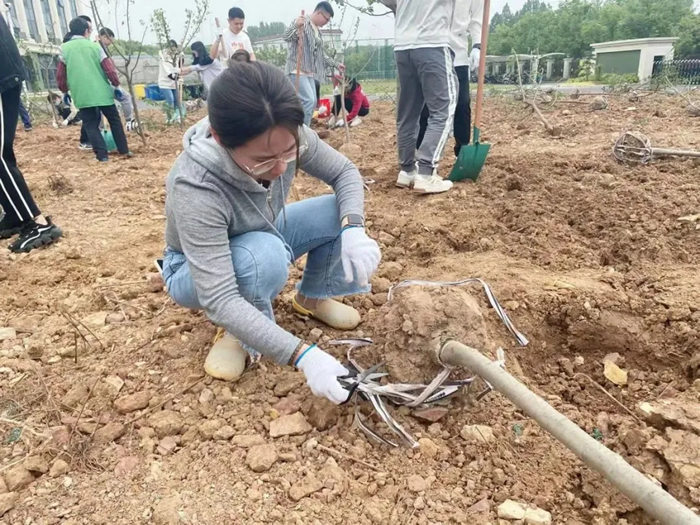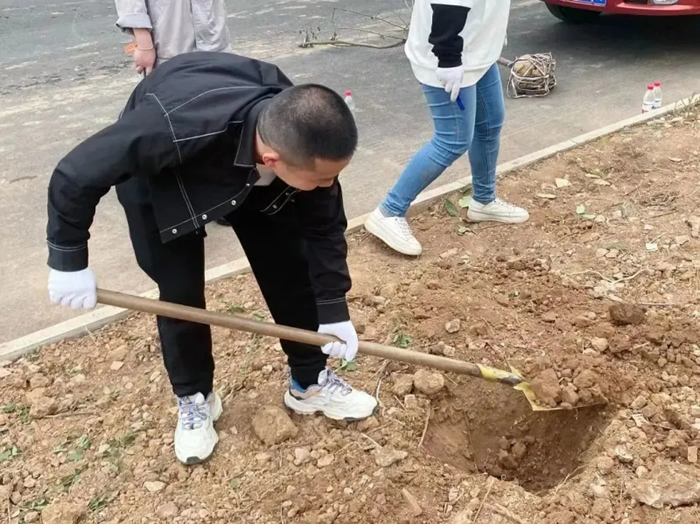 除土球布條、挖坑、扶樹、填土、檢查調(diào)整......紙上得來終覺淺,覺知此事要躬行。坑挖得或太深或太淺,埋樹根時(shí)或太松或太實(shí),凡此種種細(xì)節(jié),都會(huì)影響樹苗成活率,大家也虛心聽從綠化師傅們的意見,耐心調(diào)整,并很快得心應(yīng)手起來。