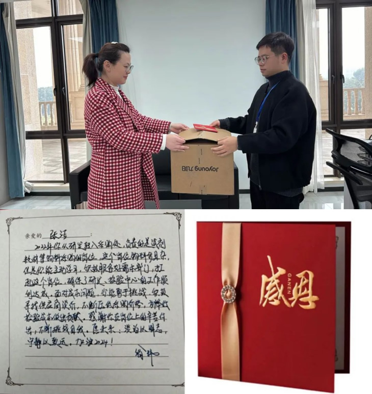 海陵衷心對他們的付出表示感謝,并為其準備了感恩卡和禮物,直屬領導“驚喜出現(xiàn)”,將手寫感謝卡和禮物交給他們!