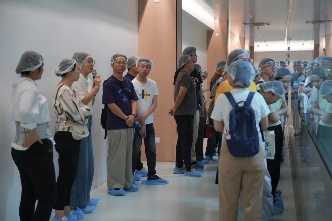 活動(dòng)伊始,大家穿戴好一次性帽子和鞋套進(jìn)入了車間,一股淡淡的甜香撲鼻而來(lái),那是糕點(diǎn)烘焙后散發(fā)出的誘人香氣。大家沿著整潔的生產(chǎn)線參觀,看到工人們身著統(tǒng)一的工作服,手法熟練地進(jìn)行著各道工序。通過(guò)生產(chǎn)負(fù)責(zé)人的講解,大家了解了合和圓緣工廠的材料使用、制作工藝、冷鏈運(yùn)輸?shù)雀髁鞒痰墓ぷ饕?guī)范和要求,也見(jiàn)微知著地感受到了合和圓緣細(xì)節(jié)體現(xiàn)的匠人追求和專業(yè)素養(yǎng)。