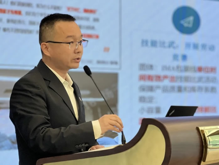 制造部部長(zhǎng)顧林對(duì)本次活動(dòng)中生產(chǎn)方面工作進(jìn)行總結(jié)發(fā)言