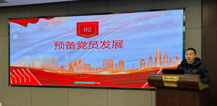 支部發(fā)展對象劉成圣向全體黨員進行思想?yún)R報。自2020年提交入黨申請書以來,劉成圣積極參加黨支部組織的各項活動,始終以黨員的標準嚴格要求自己,努力在思想上入黨、在行動上入黨。