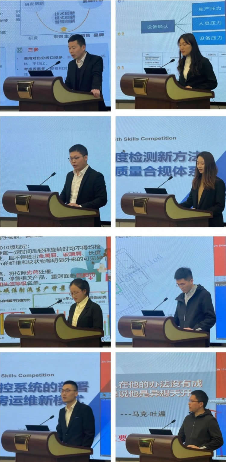 3月20日13:00,比賽正式開始。制造部生產(chǎn)運營辦公室供應(yīng)鏈小組帶來《集采品種成本精準(zhǔn)測算》的匯報,分享了如何助力集采入圍;技術(shù)部提升隊帶來《健全設(shè)備確認(rèn)評估體系,全面提升設(shè)備產(chǎn)能》的匯報,分享了如何進(jìn)行設(shè)備確認(rèn)優(yōu)化;固體制劑1號車間務(wù)實小組帶來《建立標(biāo)準(zhǔn)化記錄及流程管控,降低批記錄填寫錯誤率》的匯報,分享了產(chǎn)品A記錄填寫優(yōu)化過程;粒度方法開發(fā)小隊帶來《建立粒度檢測新方法,完善質(zhì)量合規(guī)體系》的匯報,分享了如何堅守產(chǎn)品質(zhì)量;小容量注射劑1號車間恒星小組帶來《降低產(chǎn)品B可見異物》的匯報,分享了對“任何困難都不能把我們打倒,唯有質(zhì)量”質(zhì)量精神的堅守過程;設(shè)備工程部洞悉小組帶來《降低純化水系統(tǒng)微生物》的匯報,分享了如何著眼看不見的微生物保證產(chǎn)品高質(zhì);信息部項目組帶來《基于環(huán)控系統(tǒng)的部署建立機(jī)房運維新模式》的匯報,分享了如何讓各類設(shè)備的正常平穩(wěn)運行;固體制劑1號車間帶來《技改—突破固體設(shè)備性能》的匯報,分享了如何讓設(shè)備“保質(zhì)高效”地運行。