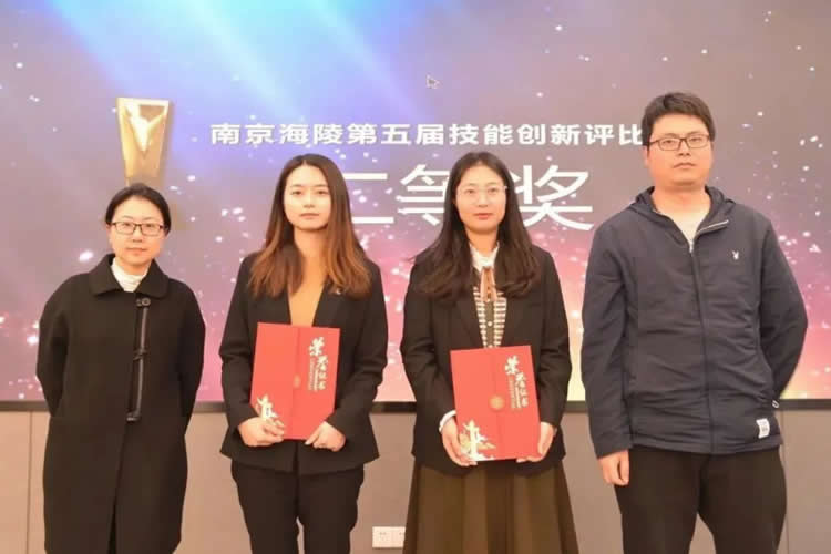 選手匯報結(jié)束后,現(xiàn)場根據(jù)評委打分,當(dāng)場公布了排名,共評選出一等獎一個,二等獎兩個,三等獎兩個。現(xiàn)場請李總為一等獎獲獎選手頒獎,并創(chuàng)新邀請了往屆技能創(chuàng)新大賽獲獎選手和工匠傳承室牽頭人為二等獎和三等獎獲獎選手頒獎。